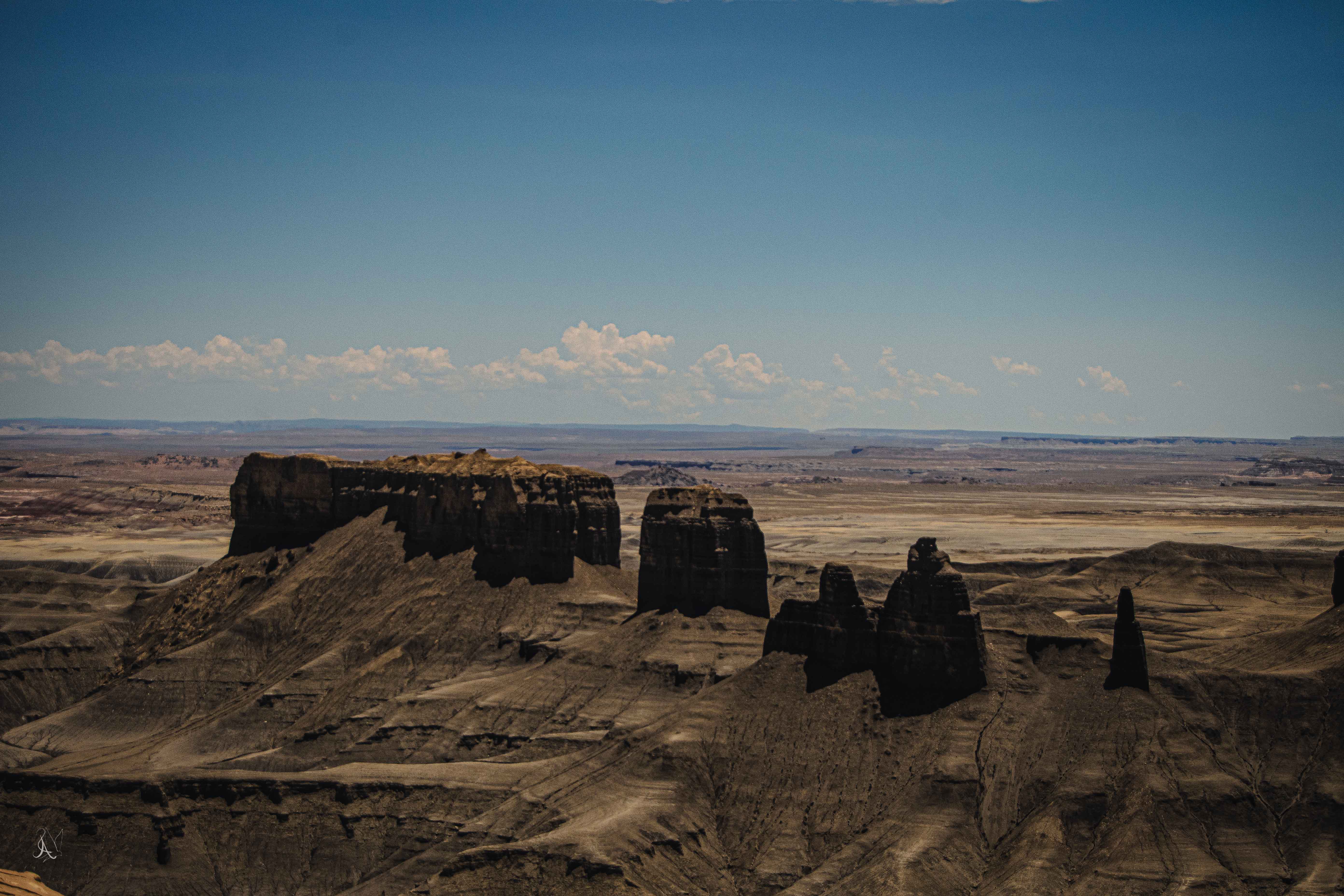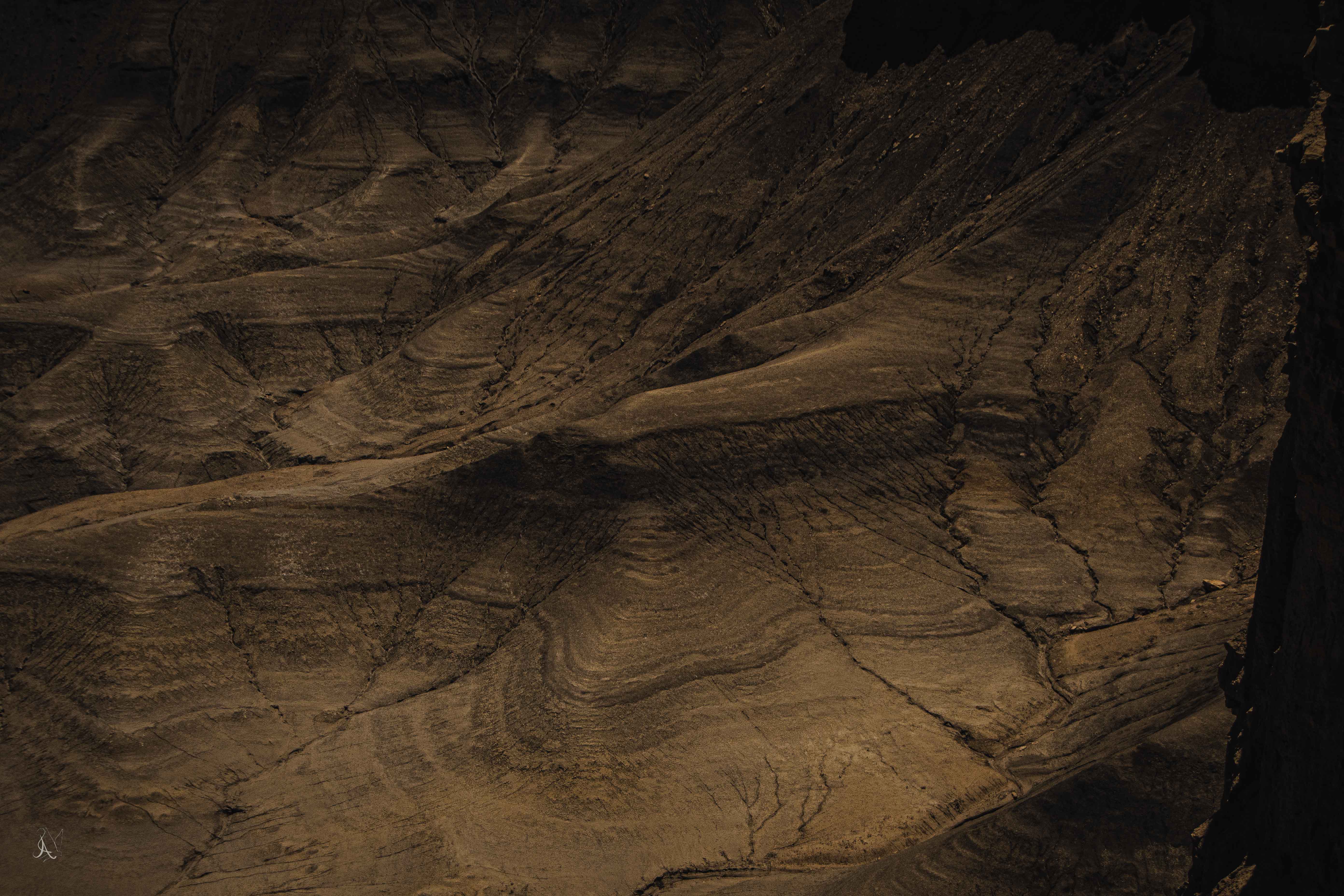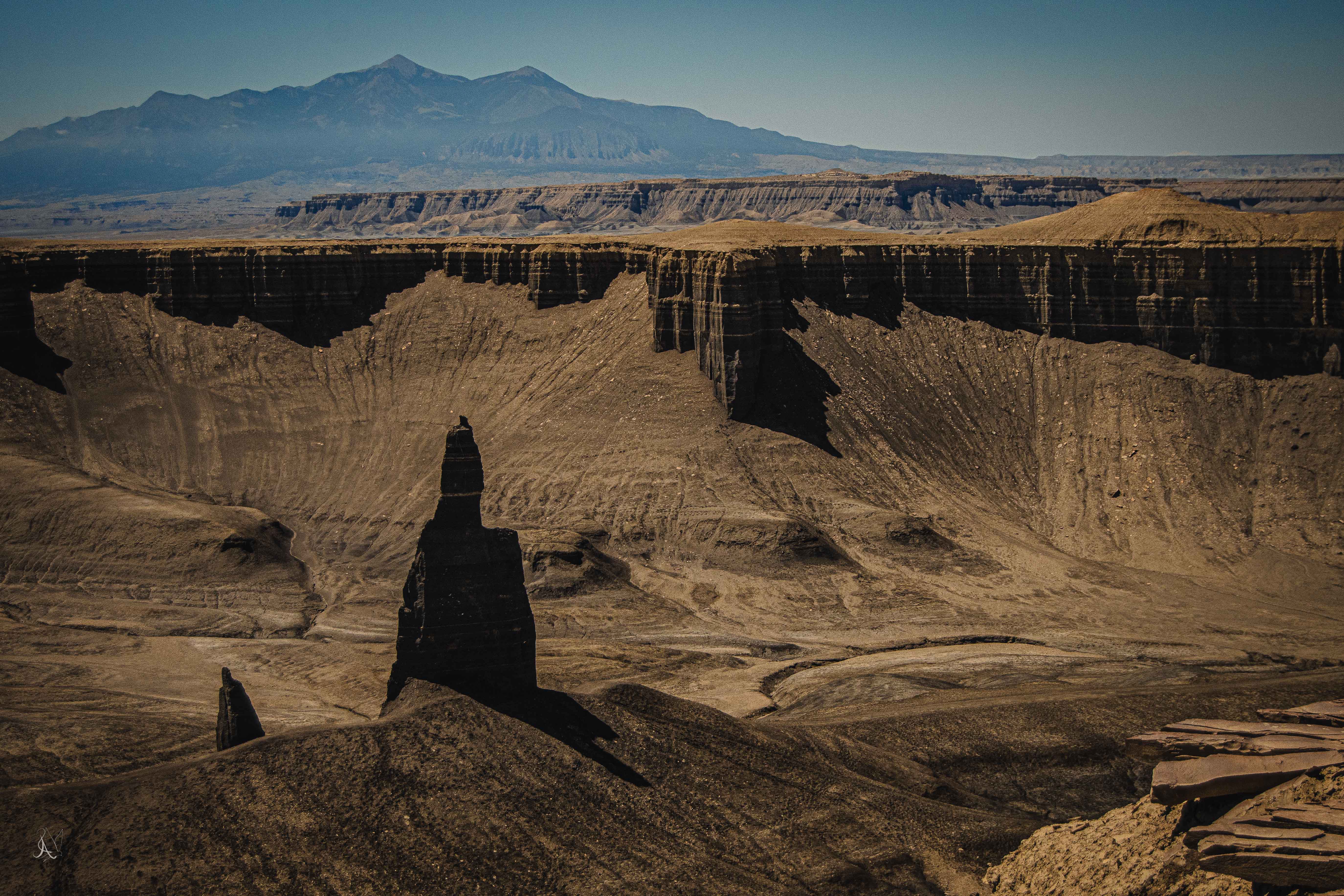 When picturing a desert in your mind the colors of the sand usually stay around a light tan to orange or red. But have you ever seen a desert with sand as black as night? There’s a portion of Central Utah that is dominated by large butte formation made of a deep black shale. As it erodes it covers the surrounding landscape with waves of dark sand.