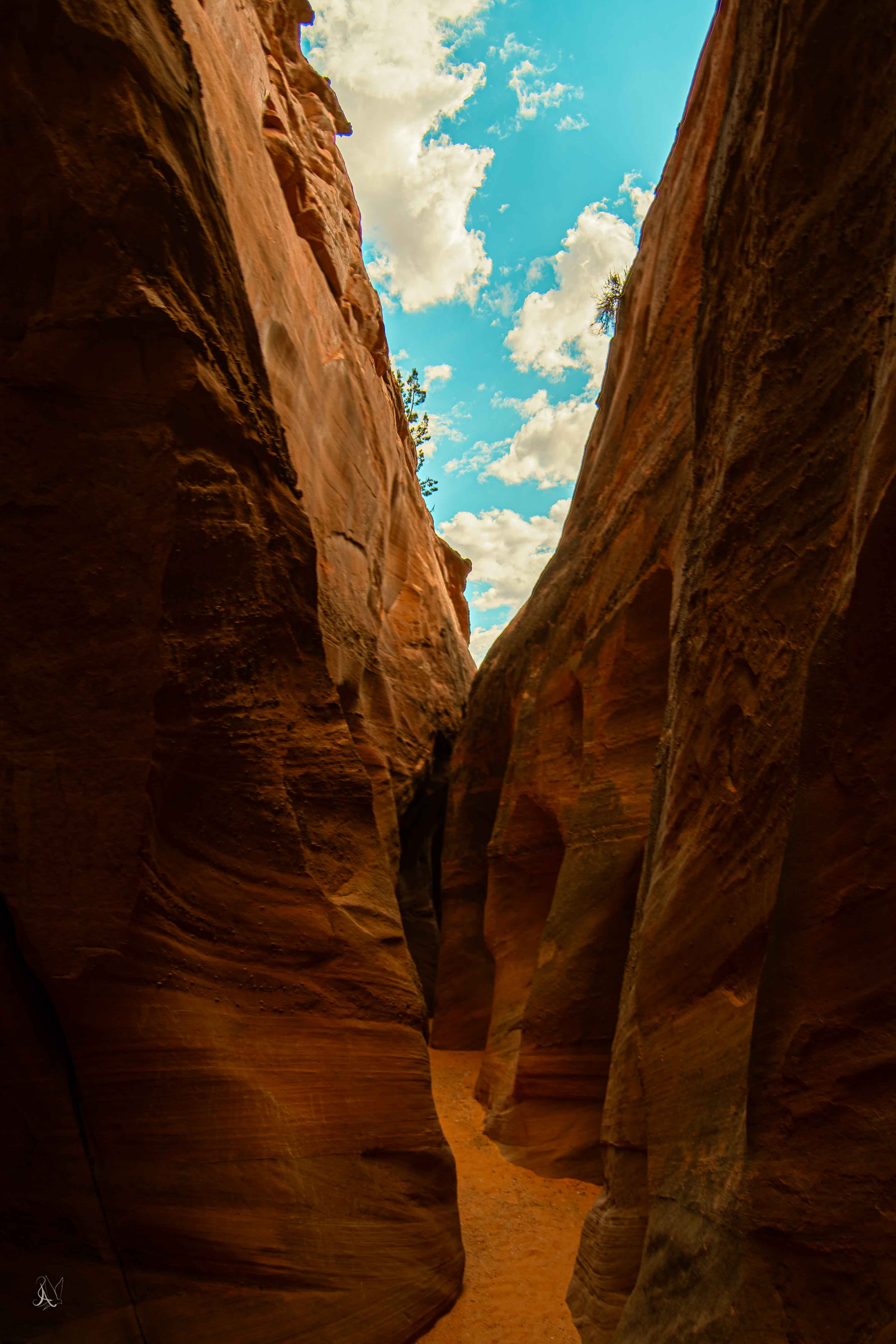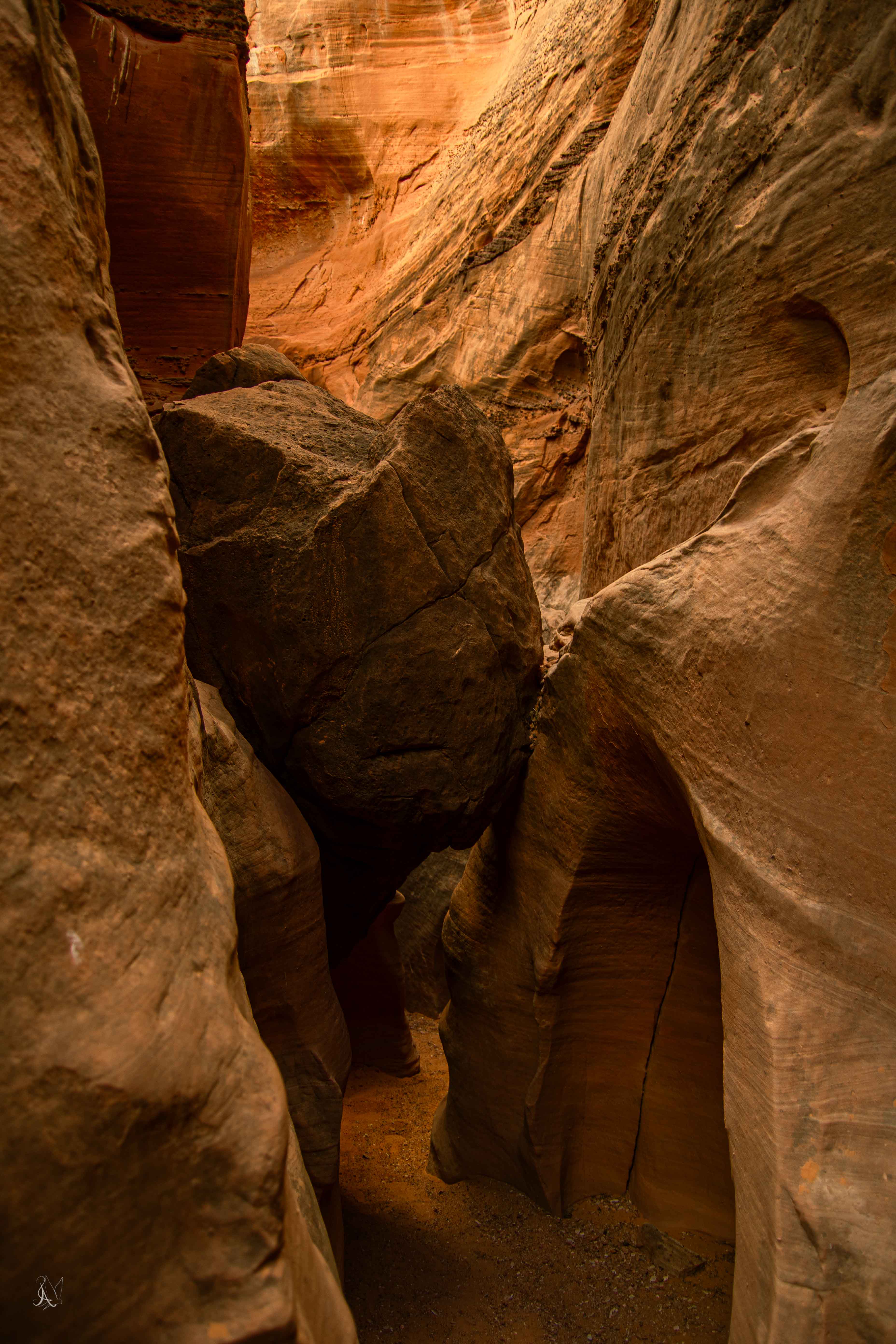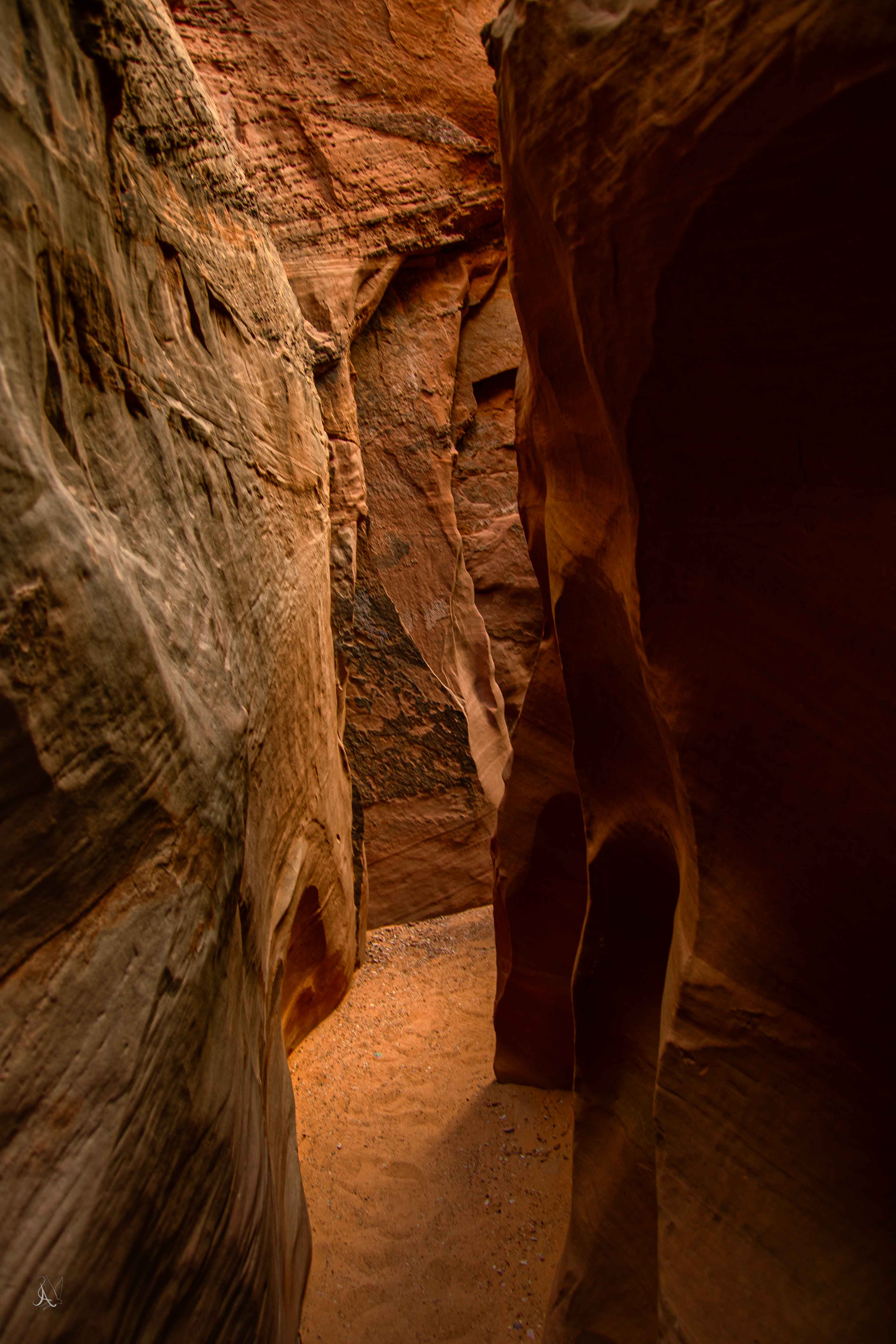 With all the wide open spaces there must also be cramped winding tunnels. When rain does come through these lands the water pools inside these slot canyons and carves them deeper and deeper over time. Squeezing through the tight spaces you get to see how the water erodes away the rock and creates beautiful patterns to get lost in.