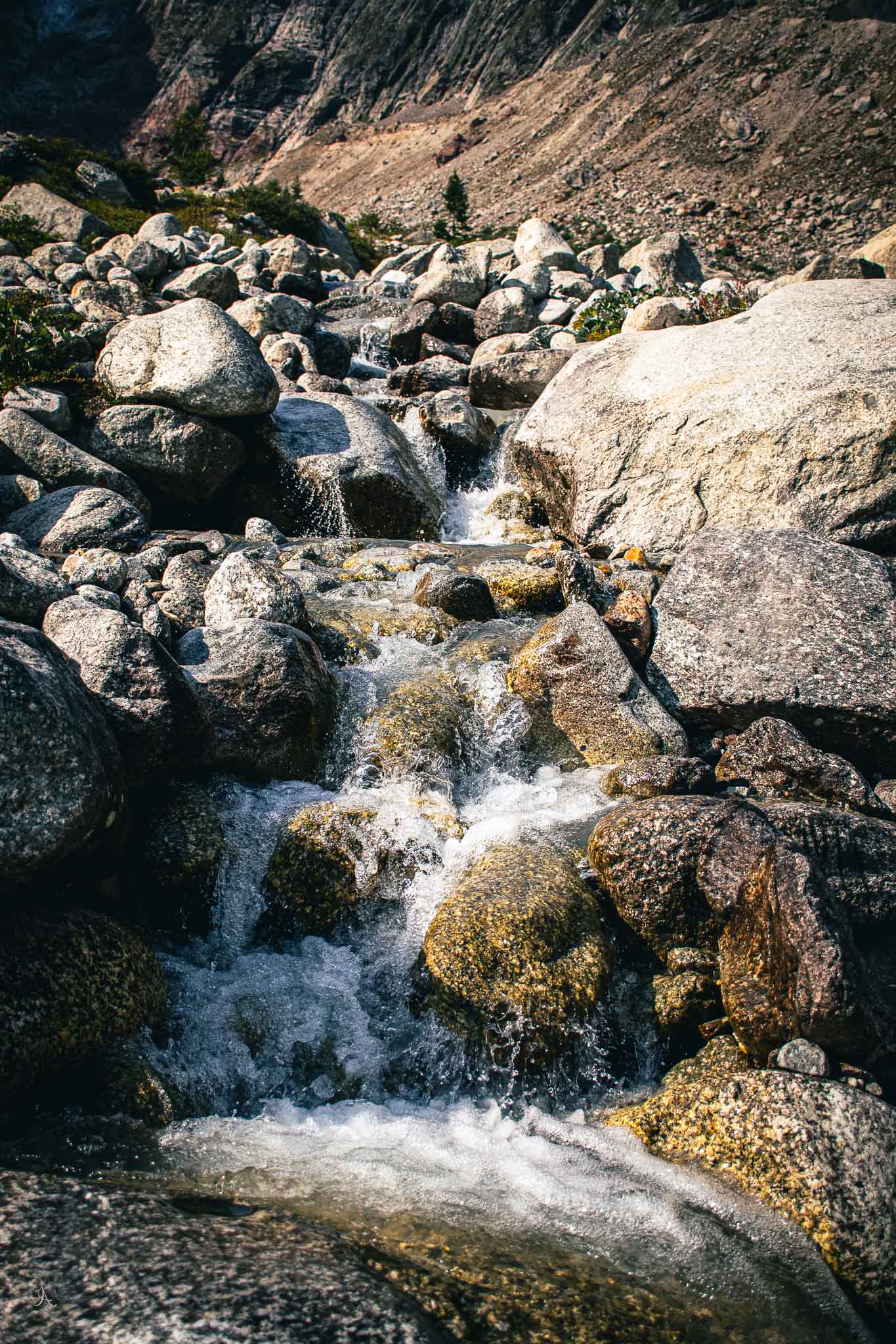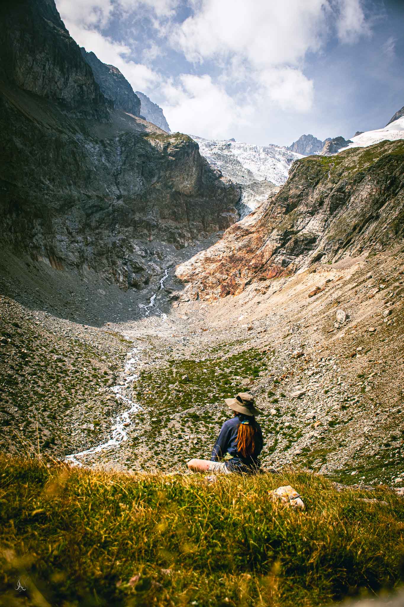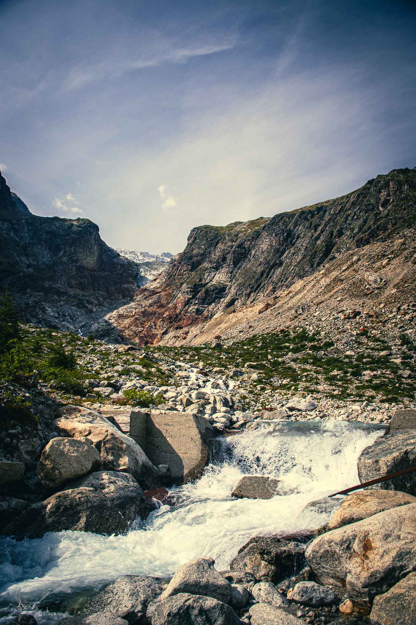 The river rushed down the valley with a cold force that I was lucky to walk through. Feeling the fresh and clean water heals the soul. High above me stood our Refuge for the night. Farther up closer to the glacier itself was another one hidden between the rocks. A temptation for another journey