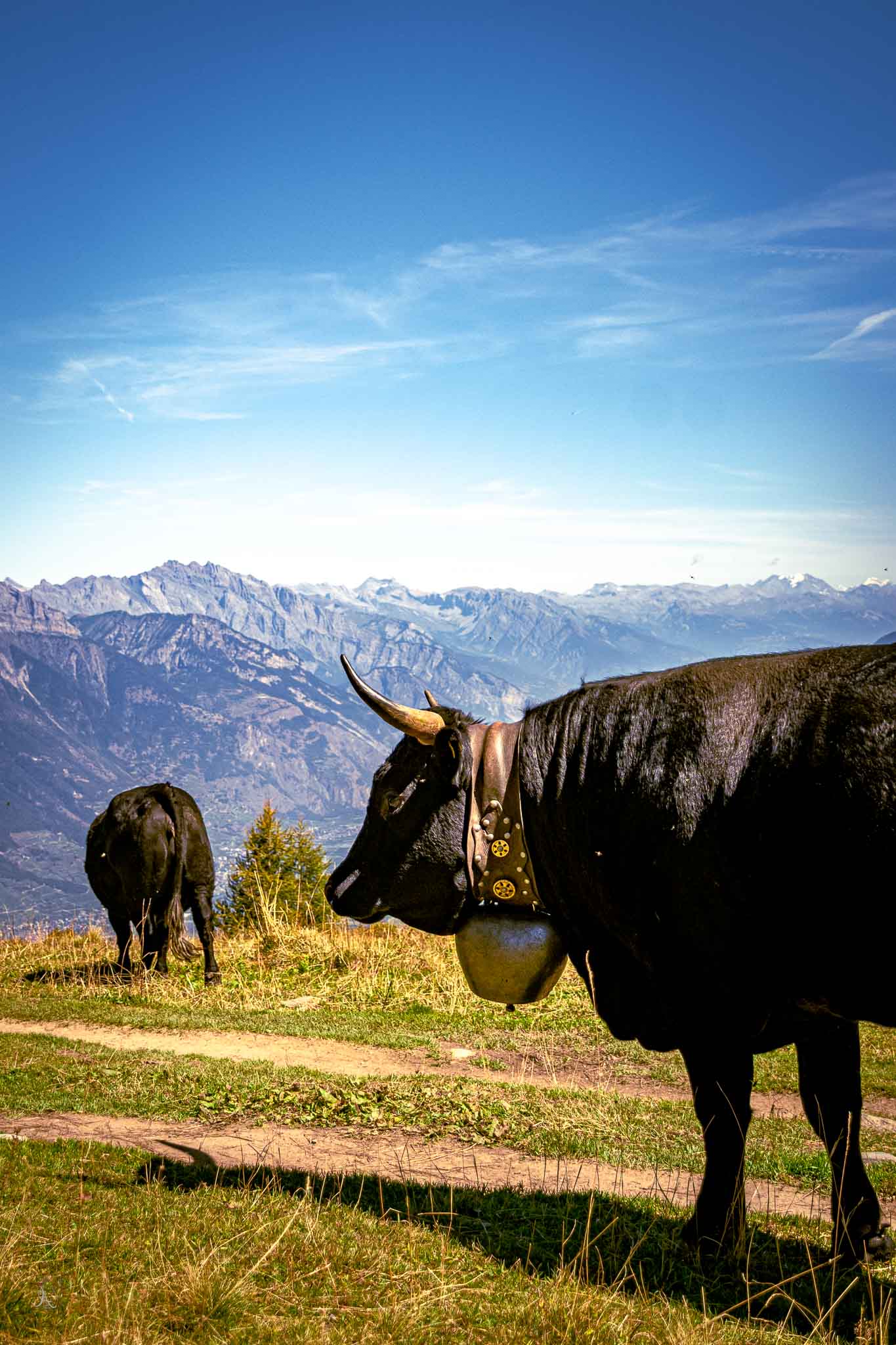 As we started down the trail the air around us started to ring. The valley below us echoing the bells from the cows that grazed along the grasslands. It felt magical from all of the sounds reflecting around us. They were a friendly bunch and gave us some company while we ate our lunch. The Swiss Alps were covered in beautiful forests of pine trees that decorated the mountains and cabins in the valley.