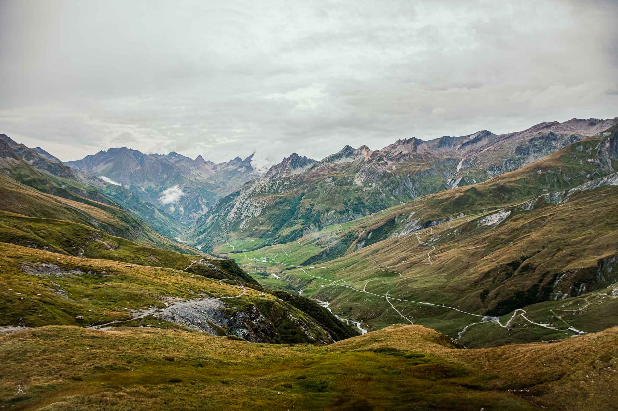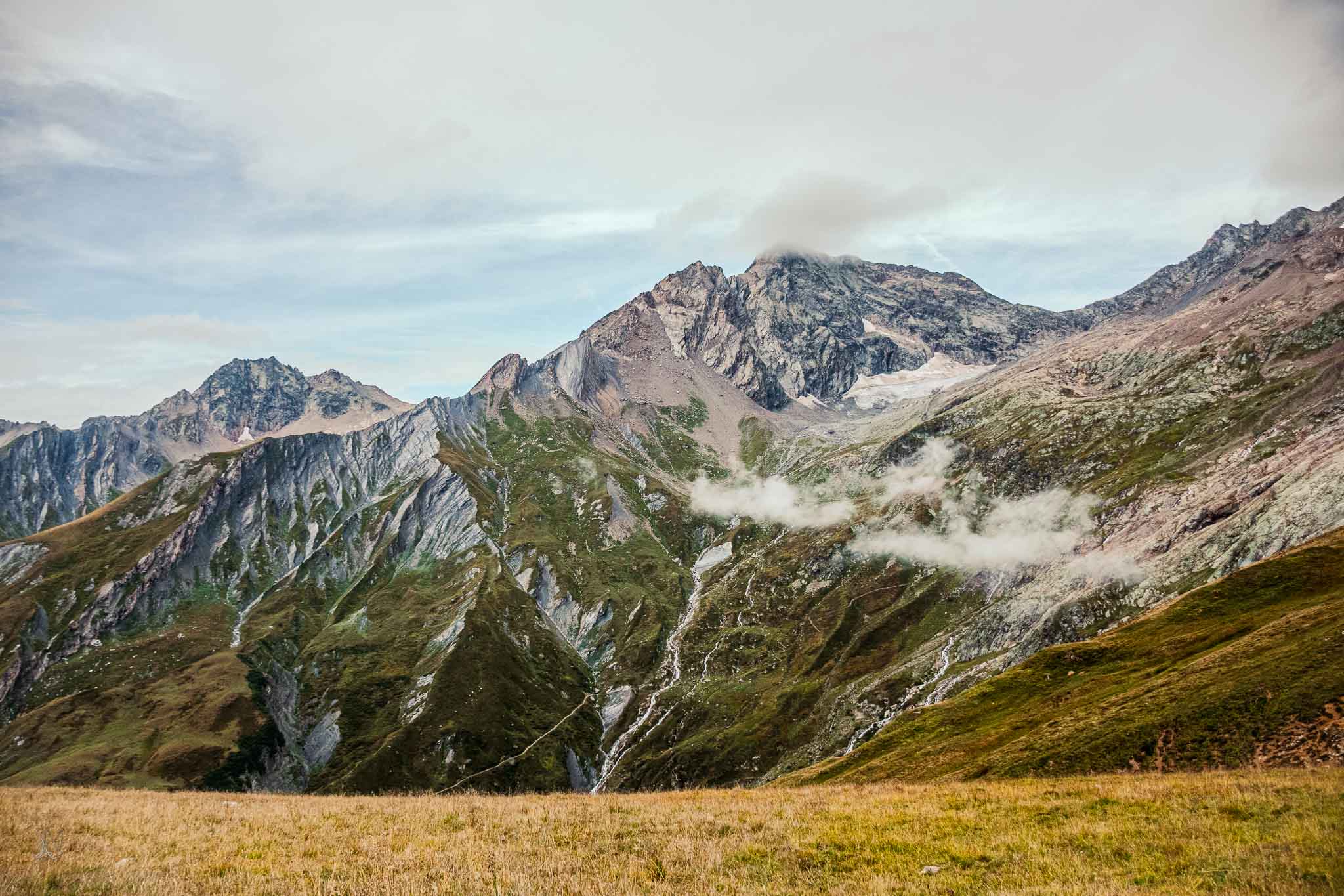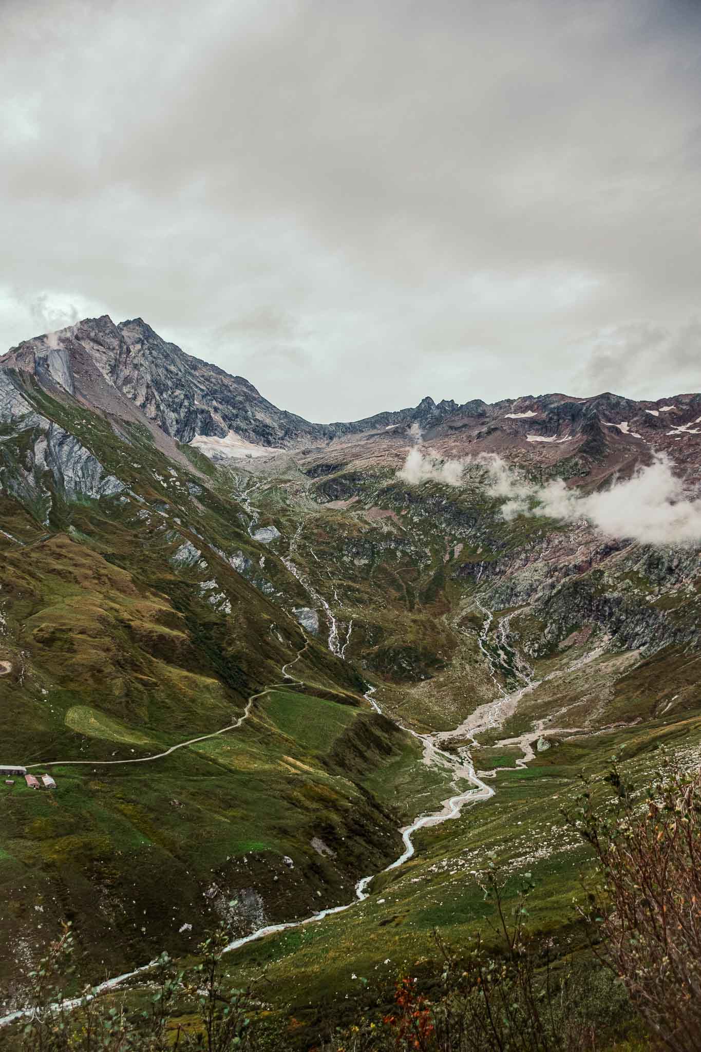 We walked down the valley following the river to our next destination, Courmayeur. We awoke to a misty sky and the air humid and stormy. The Mountains covered and peaking through the clouds made for the perfect background to hike to.