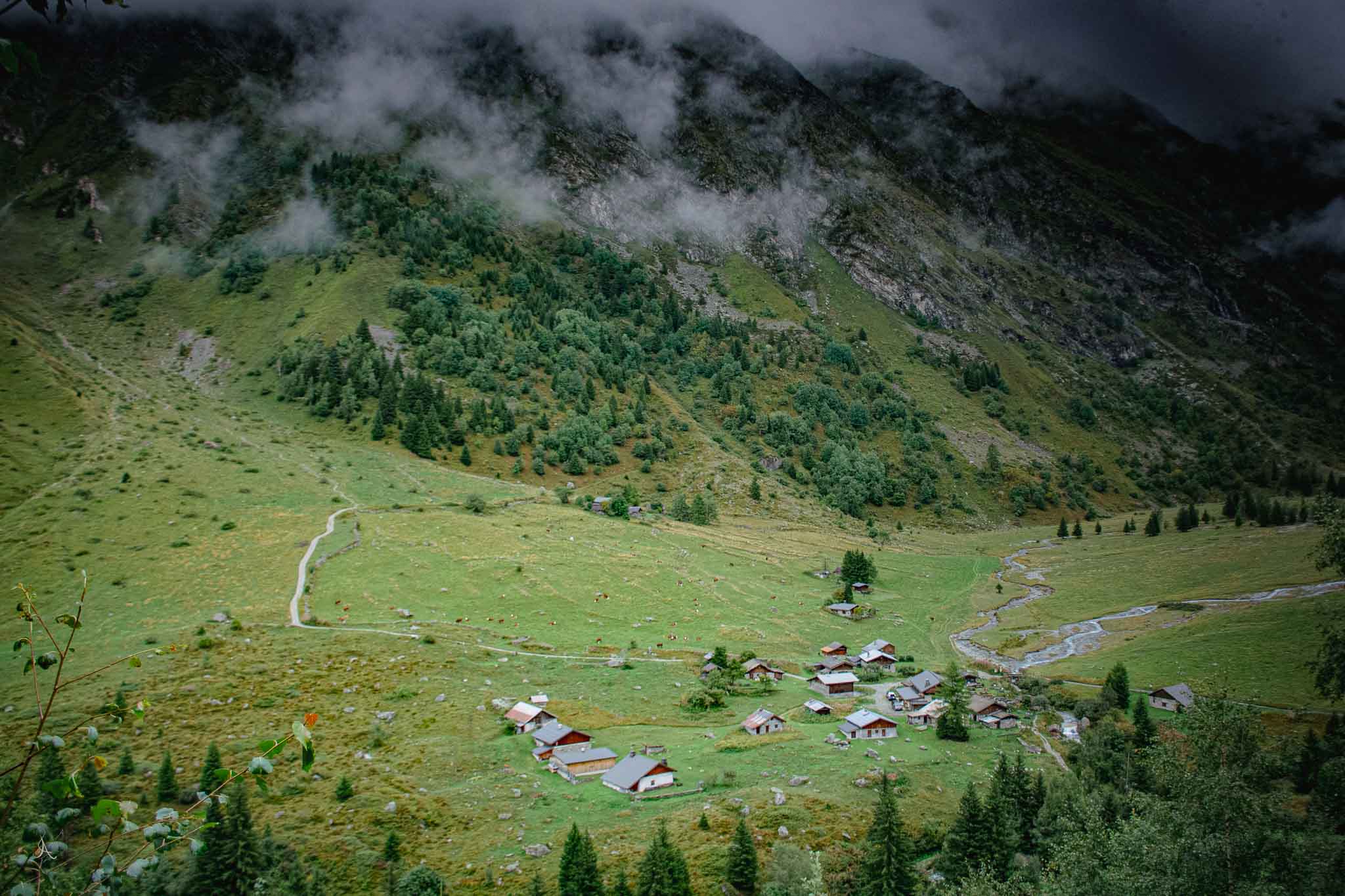 Our Final Day was across the French countryside heading towards Chamonix. Walking through these farming villages and beautiful views was a great way to end the trip. In the final stretch we climbed up a steep winding path into the clouds. Then came out to a canyon filled with french cottages and towns.