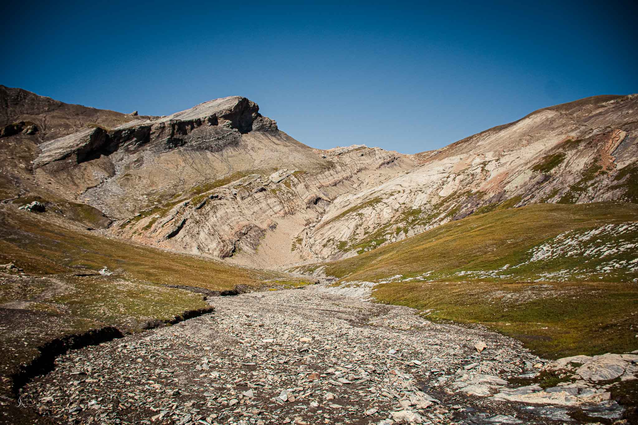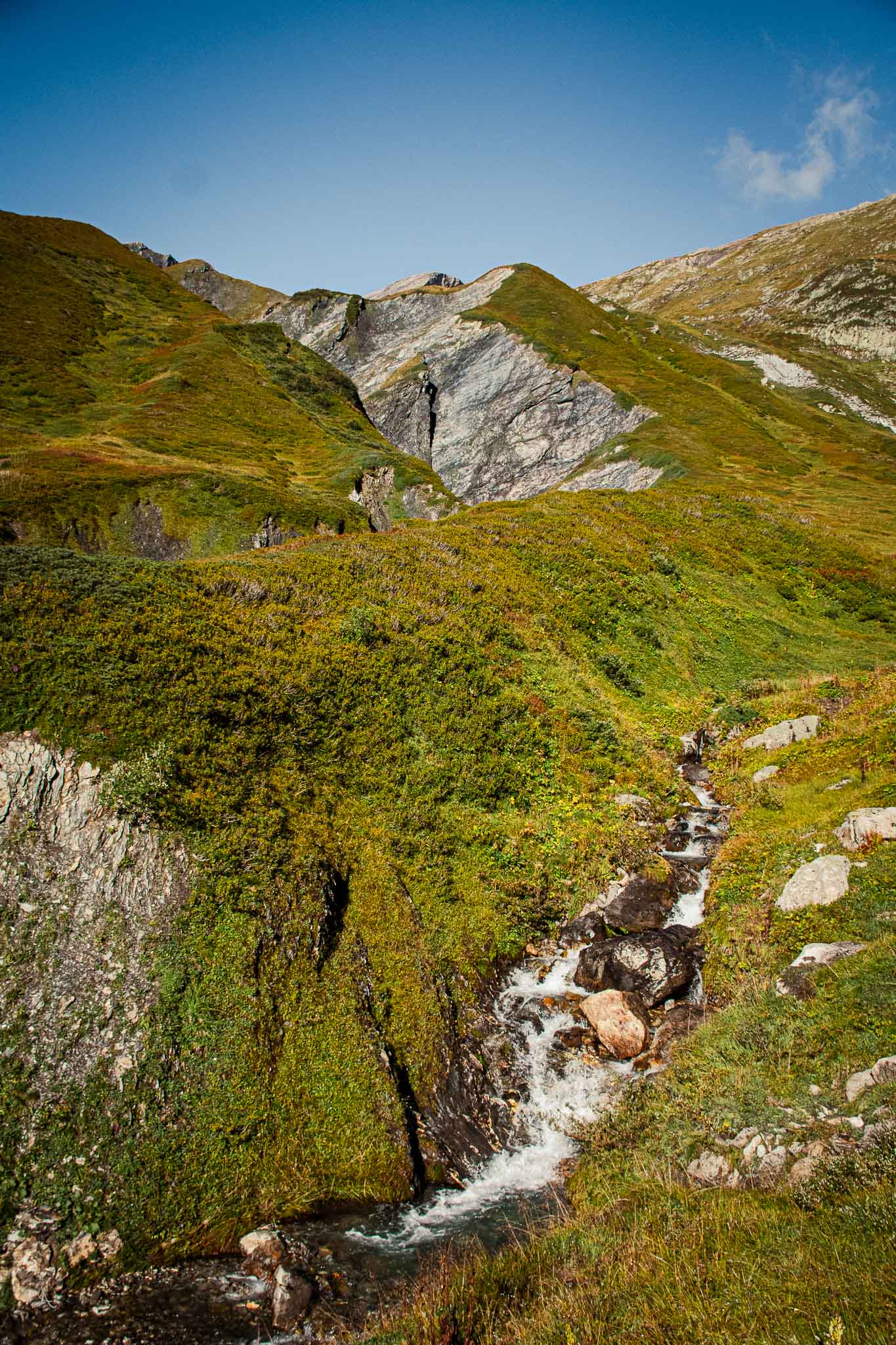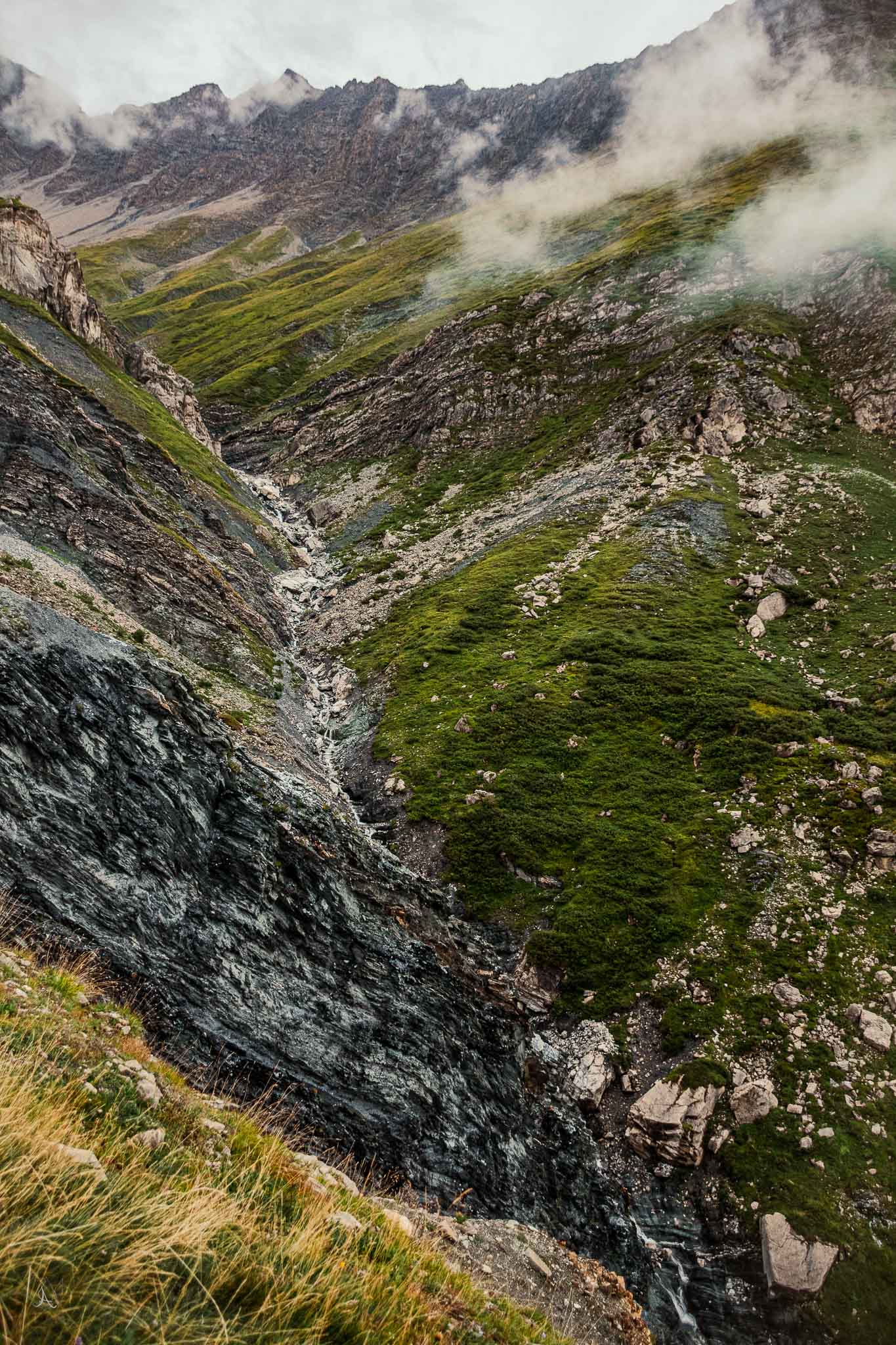 The river rushed down the valley with a cold force that I was lucky to walk through. Feeling the fresh and clean water heals the soul. High above me stood our Refuge for the night. Farther up closer to the glacier itself was another one hidden between the rocks. A temptation for another journey.